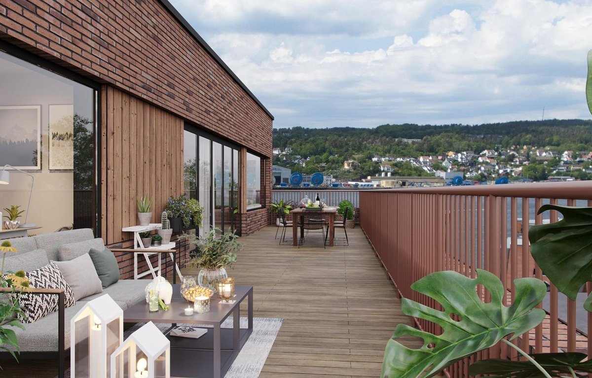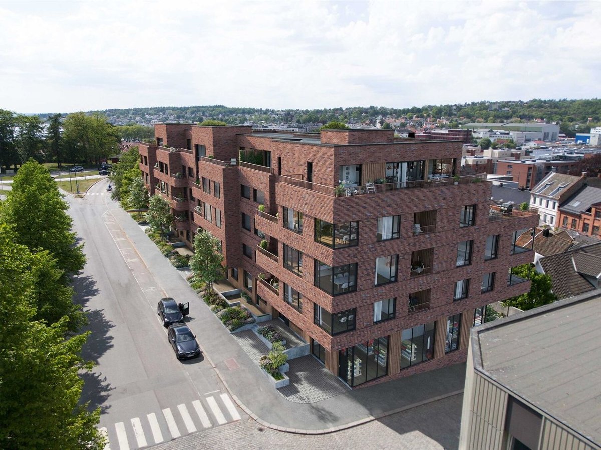 bebyggelse. Bygget blir over 5 etasjer, hvor flere av leilighetene får storslått utsikt.